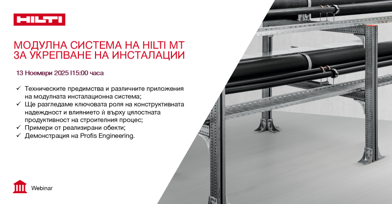 Уебинар 4 – " Модулна система на Хилти МТ за укрепване на инсталации", 13.11.2025