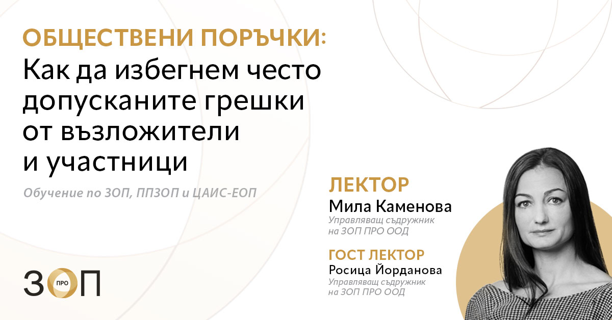 Онлайн обучение на тема "Обществени поръчки – Как да избегнем често допусканите грешки от възложители и участници", 09.02.2023 г.